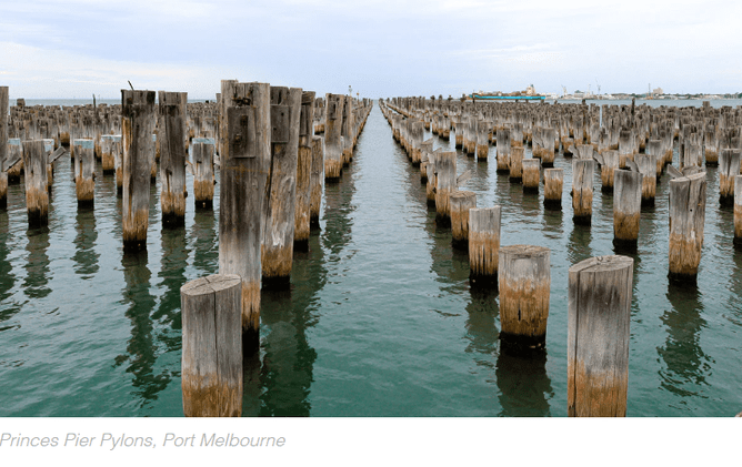 Princes Pier Pylons at Port Melbourne – probably my fave of the day I think because of the colour of the water and the play with lines and angles