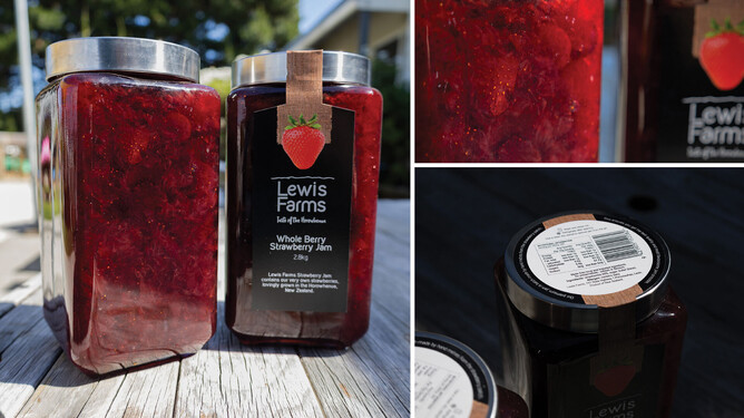 We designed and produced a simple one piece sticker to seal the hulking 2kg jar of farm grown wholeberry jam! We knew we had to capture those whole berries suspended in no-longer-whole berries and the image is 🤌🏽