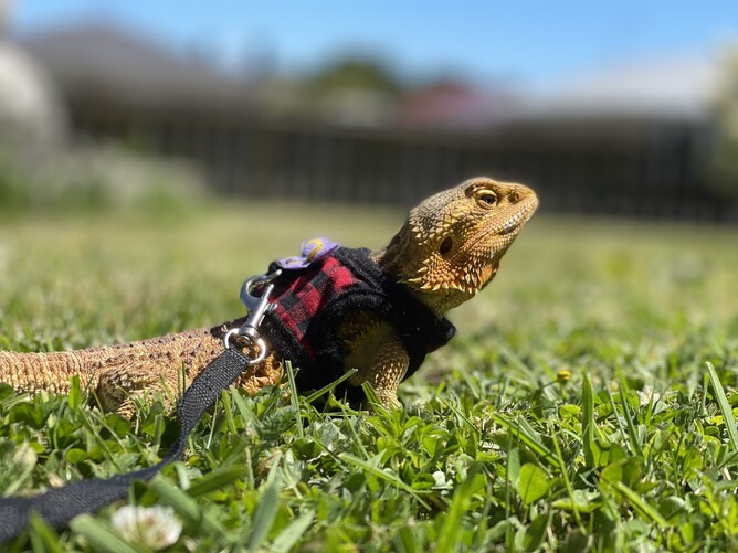 Boo has been enjoying sunning herself in the garden recently, though never impressed with being put on a leash, what dragon would? Dragons do not belong on leashes, that said, if she doesn’t want to be eaten by a bird, or get lost, a leash is a must.